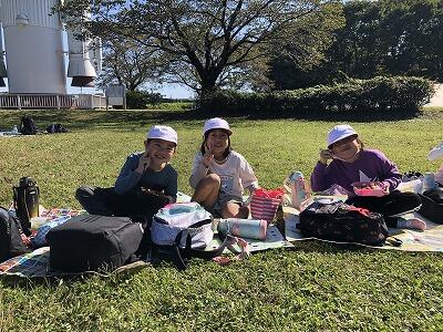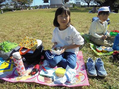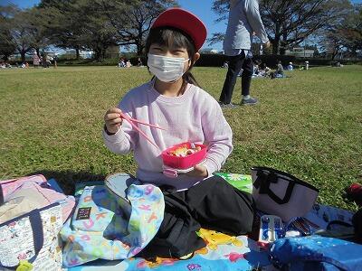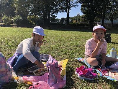 晴れていたので、みんなで芝生の広場でお弁当を食べました。