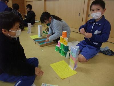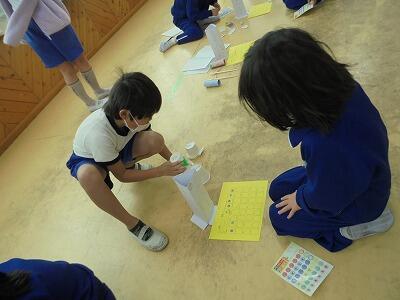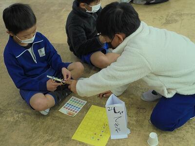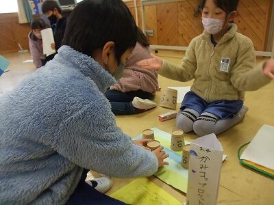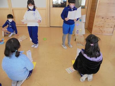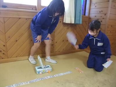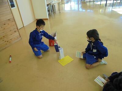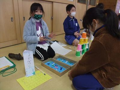 一年生を招待し、自分たちが作ったおもちゃで遊んでもらいました。