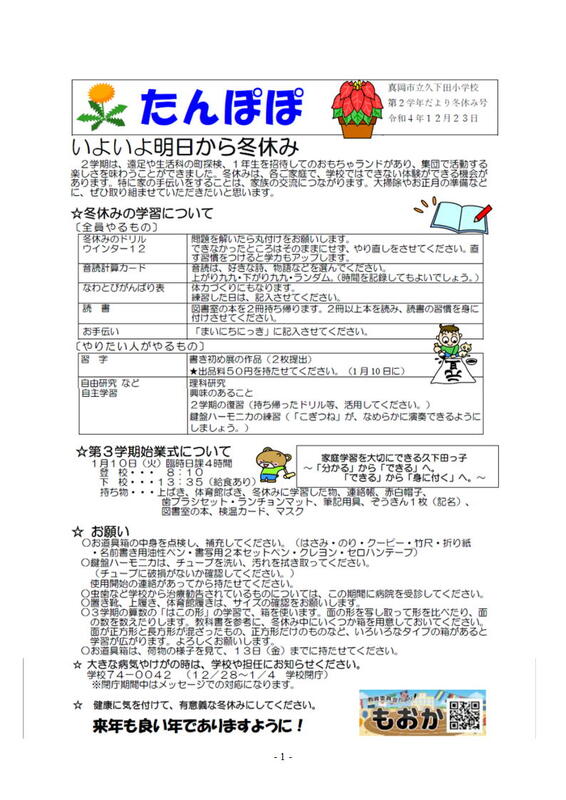 第2学年だより 冬休み号