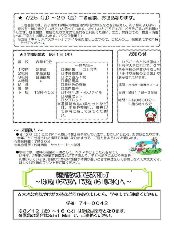 変更点:8月20日(土)に予定していたPTA奉仕作業は中止となりました。