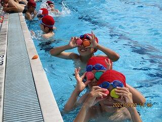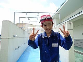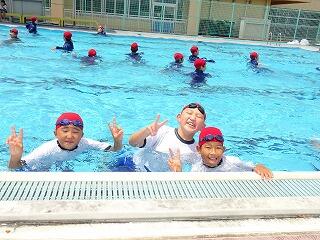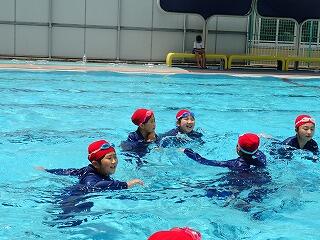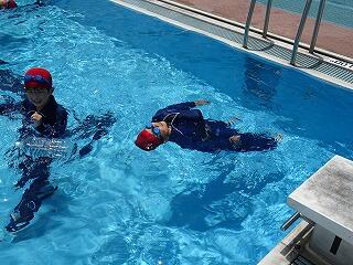 着衣水泳を行いました。服を着ているときの泳ぎにくさを実感しました。さらに、川などでおぼれてしまったときの浮き方を練習しました。夏休みには水の事故に気を付けましょう。