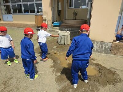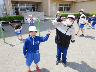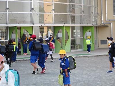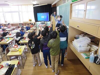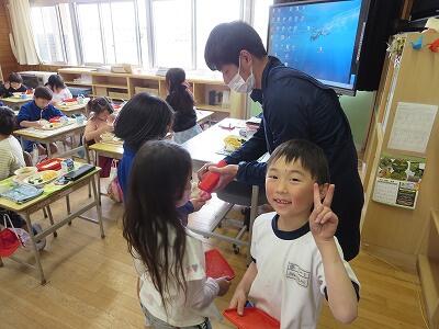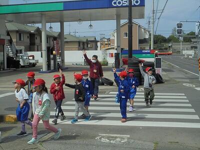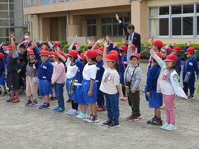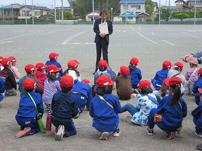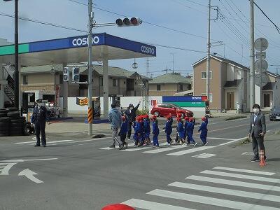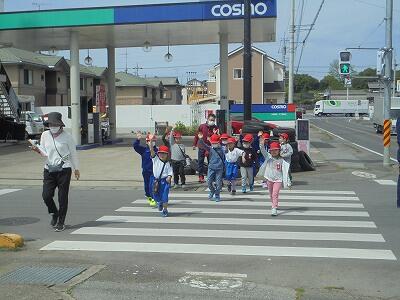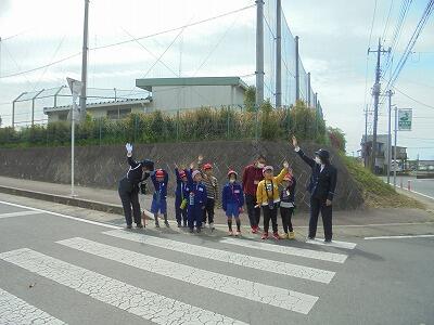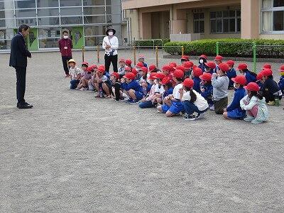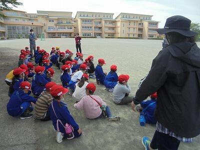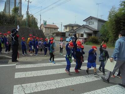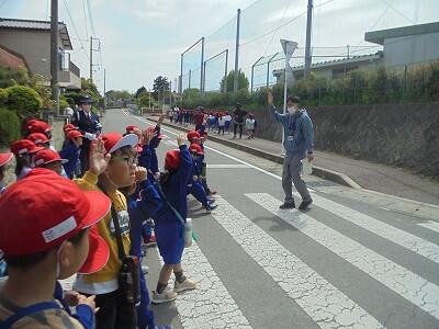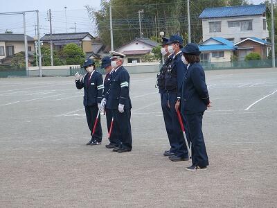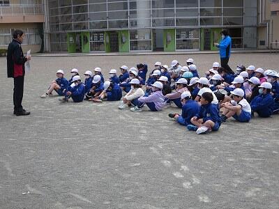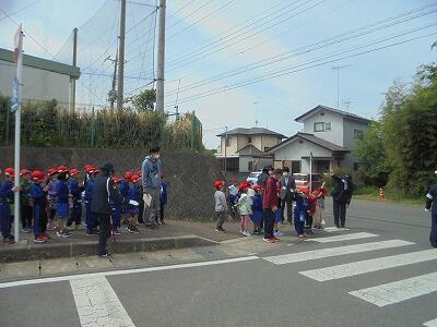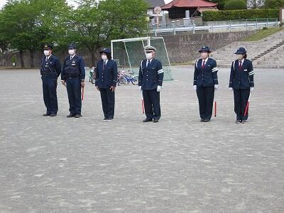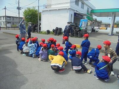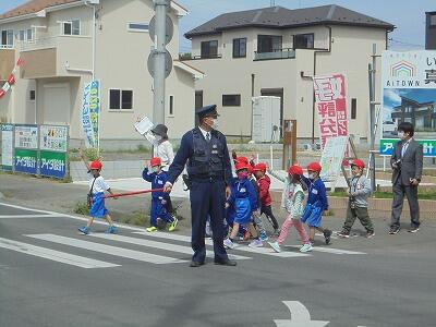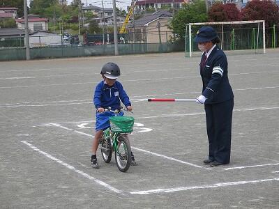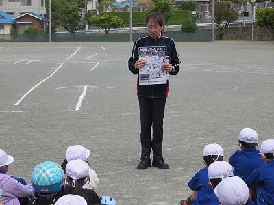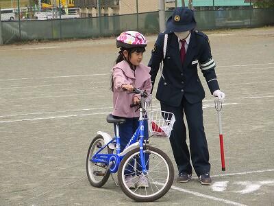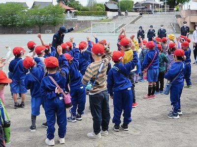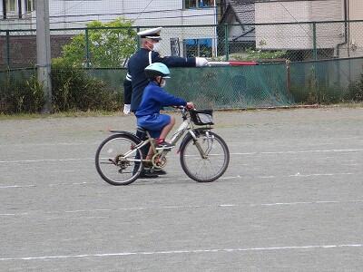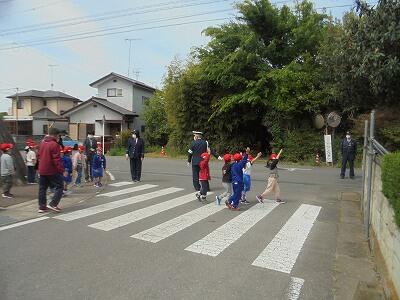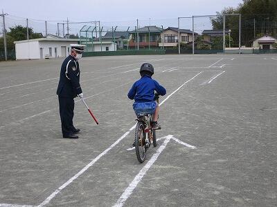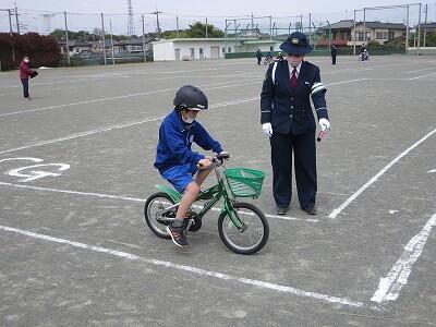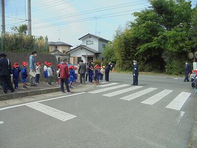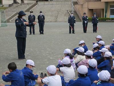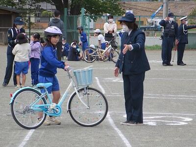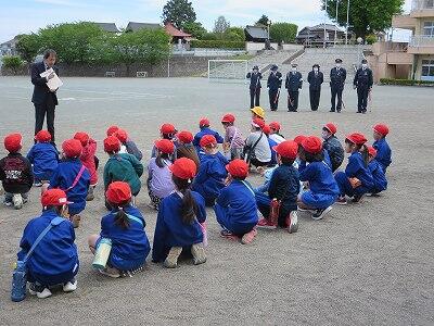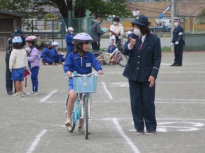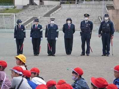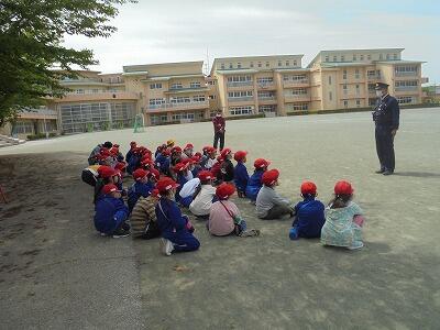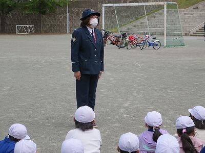 この交通安全教室には、おまわりさんと交通指導員の方々をお招きしました。