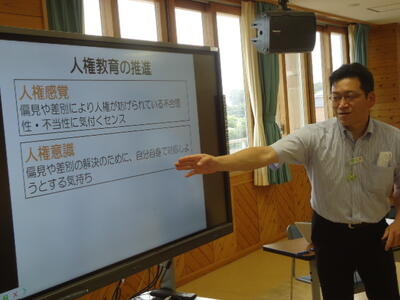 本日の研修会は、「栃木県教育委員会事務局芳賀教育事所ふれあい学習課」より、上野竜一副主幹を講師としてお招きし、「人権」について学びました。