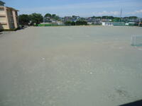 下の写真でも分かるように、一気に雨が降り、そしてあっという間に校庭は水浸しになりました(-_-;)