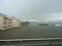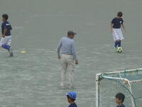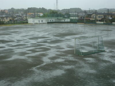 下の写真でも分かるように、一気に雨が降り、そしてあっという間に校庭は水浸しになりました(-_-;)