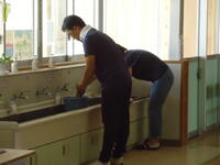久下田小学校児童の皆さん、明るく元気に、そして楽しい夏休みを過ごしていますか。今日、皆さんの保護者の方々のお陰で、学校全体がピカピカになりました!