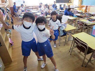 「秋」らしい気持ちの良い陽気ですね。校舎内に戻ったら手洗いを忘れず、しっかり消毒を(^^♪