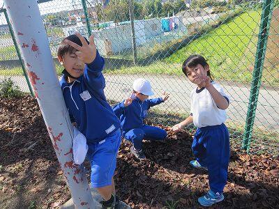 気持ち良い陽気の中、子供たちは校庭に飛び出し、元気いっぱい友達と遊びまわっていました。