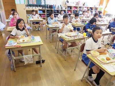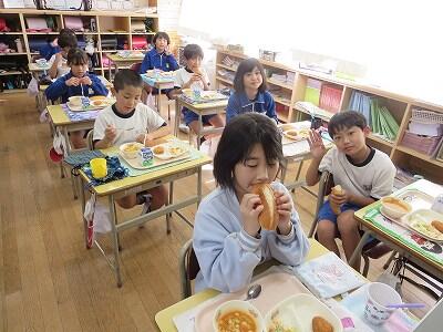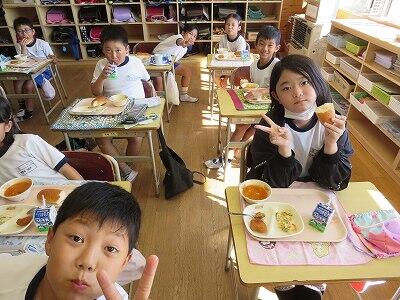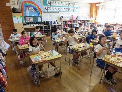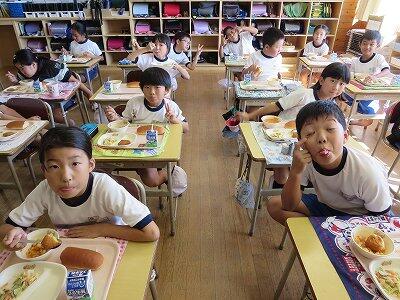 今日は1・2年生の給食風景です。