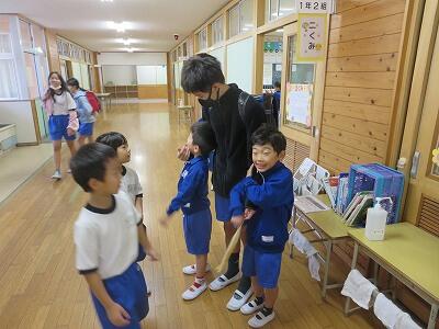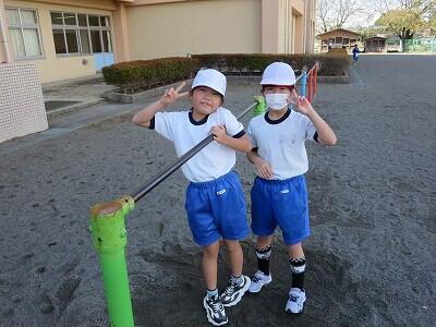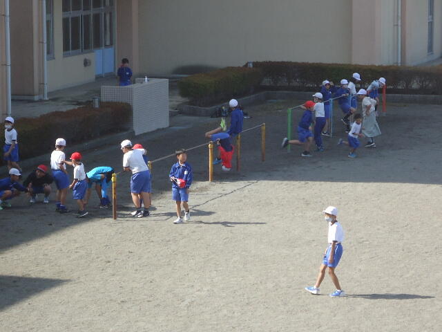 気持ち良い陽気の中、子供たちは校庭に飛び出し、元気いっぱい友達と遊びまわっていました。それでもやっぱり、2・3年生がいないと少なく感じてしまいますよね(;^ω^)