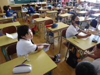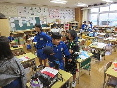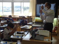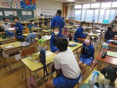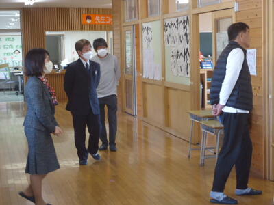 まず学校側から2学期が始まってからのこれまでの様子を御説明し、その後、各教室を訪問していただき、職員や子供たちの頑張っている様子を御覧いただきました。