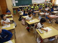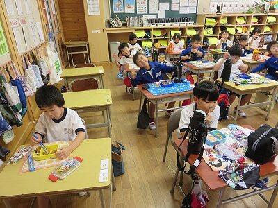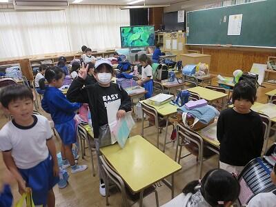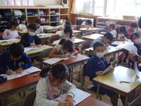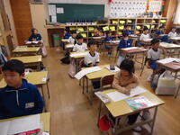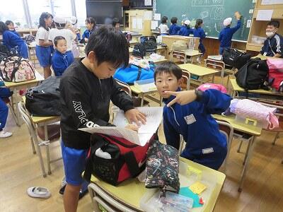 今日も爽やかに晴れ渡りました。1年生は、明後日の「秋の遠足」について、しおりを使いながら参加の仕方等について、しっかりと確認をしていました。子供たちは真剣な眼差しで先生を見つめ、熱心に耳を傾けていました。(^^♪♪)
