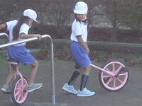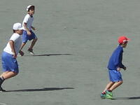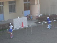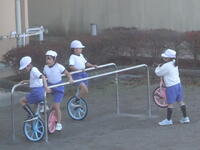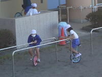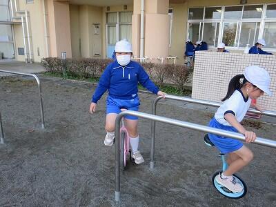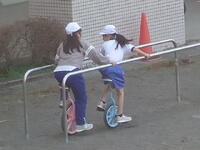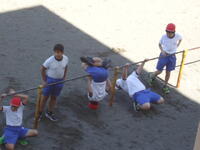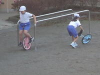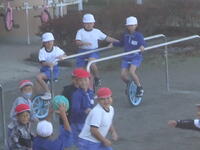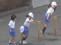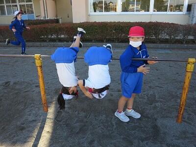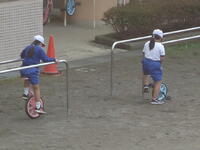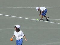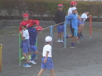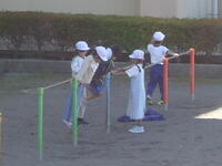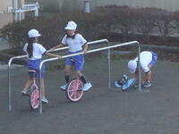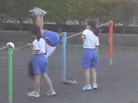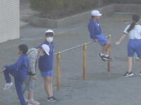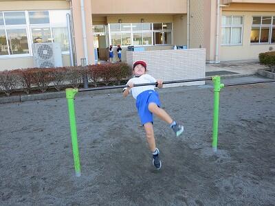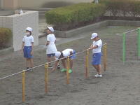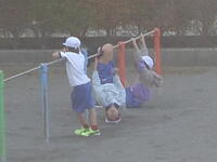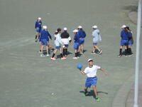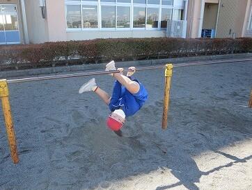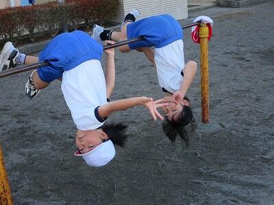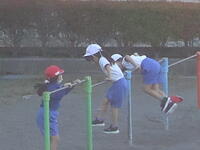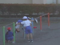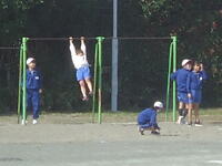 校庭での体育の授業では、男子が「鉄棒運動」、女子が「ボール投げ運動」を、それぞれ意欲的に取り組み、爽やかな汗を流していました。