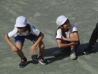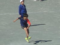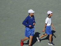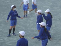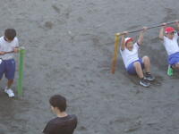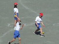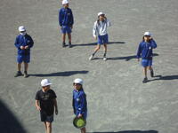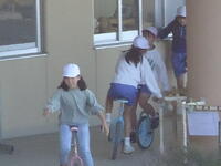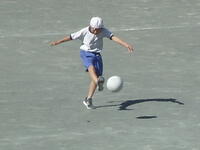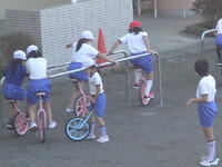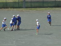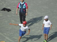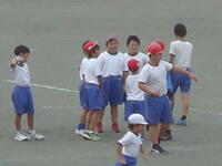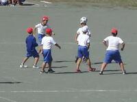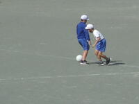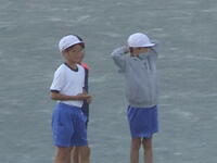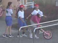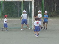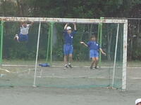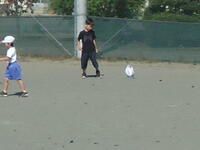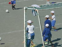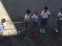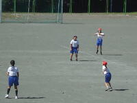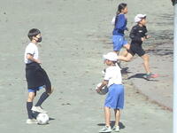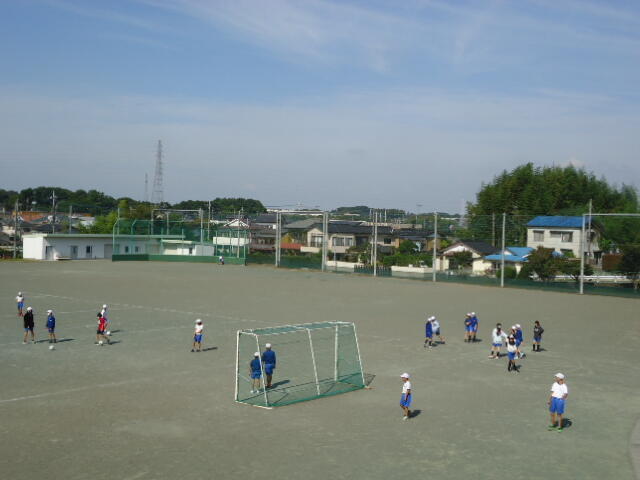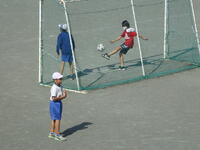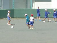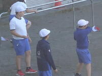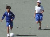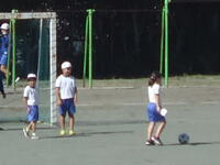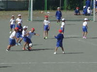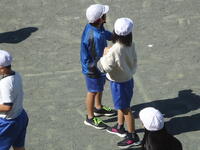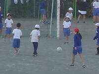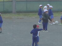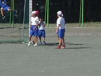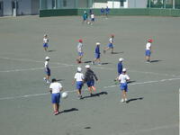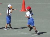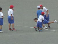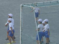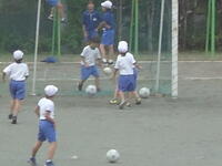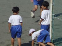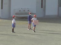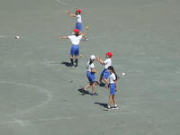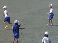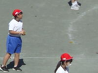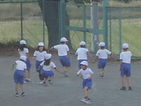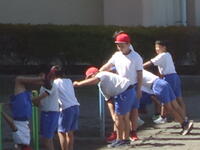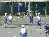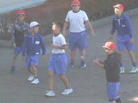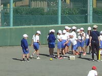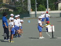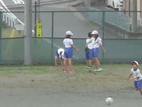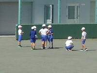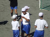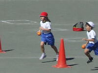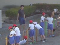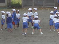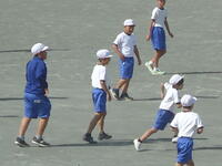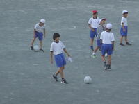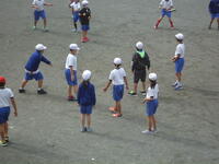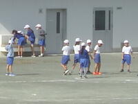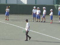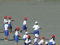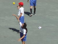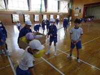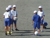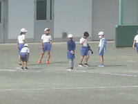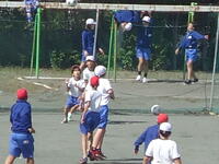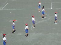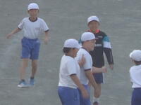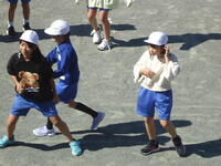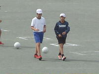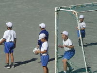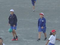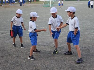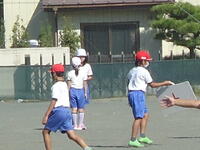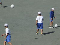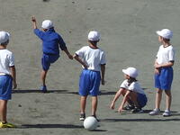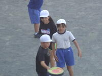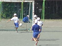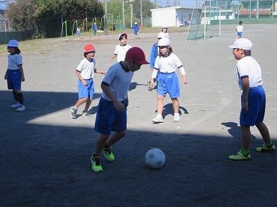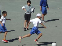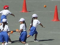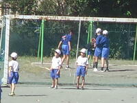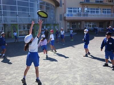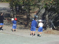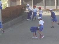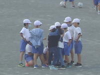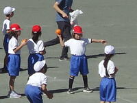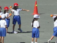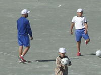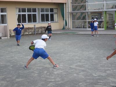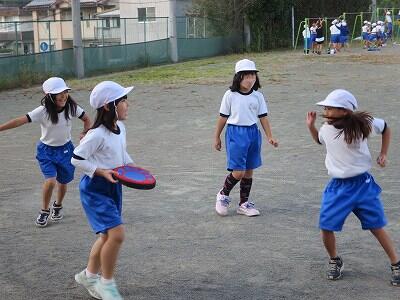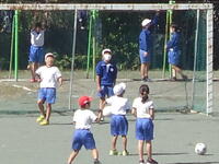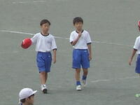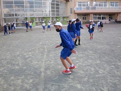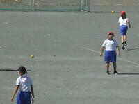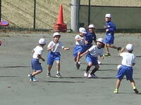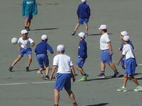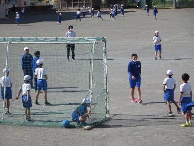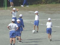 校庭での体育の授業では、子供たちは柔らかいボールを使いながら意欲的に、そしてとても楽しそうに汗を流していました。