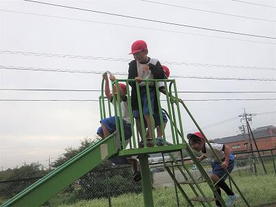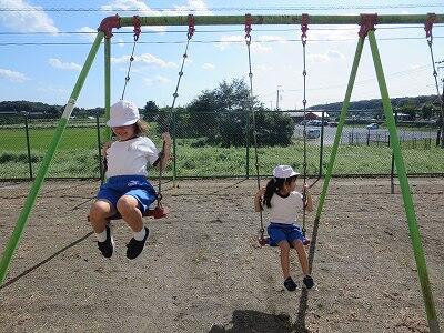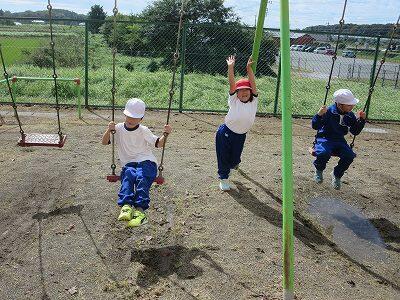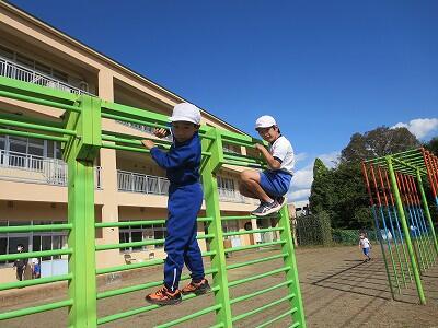 校庭で元気に遊ぶ子がたくさんいます。