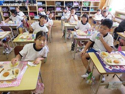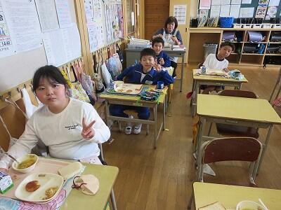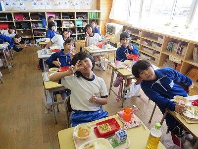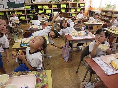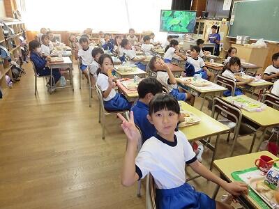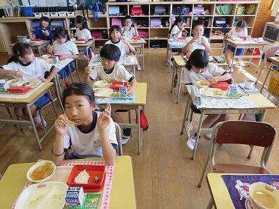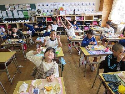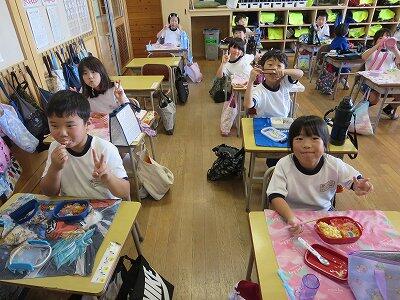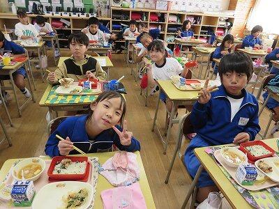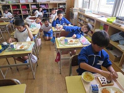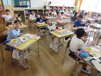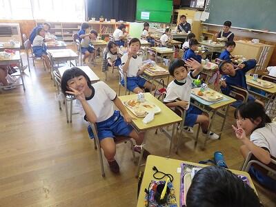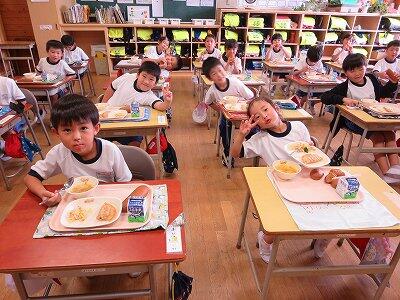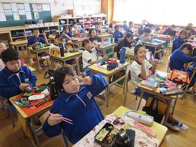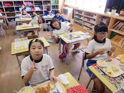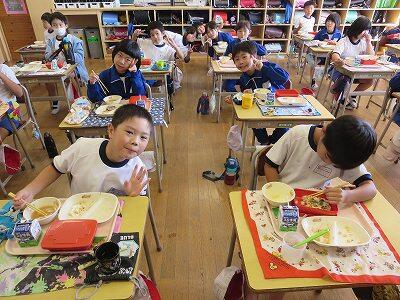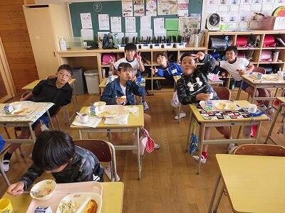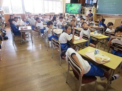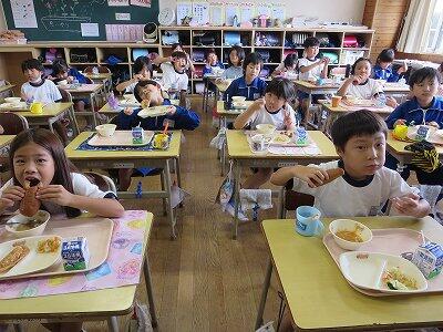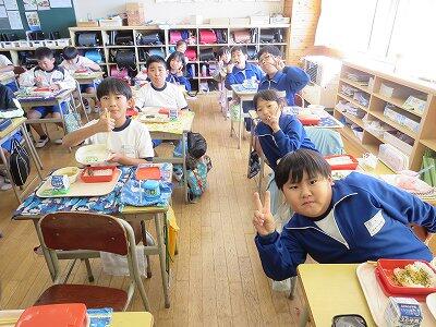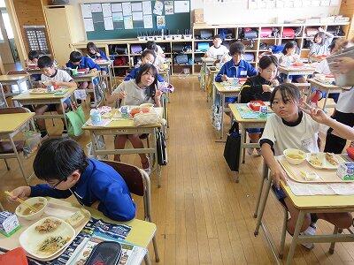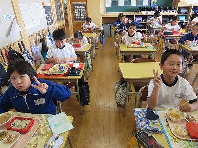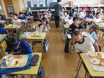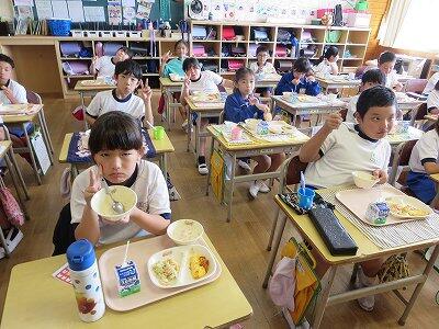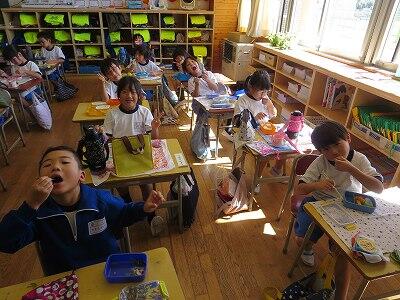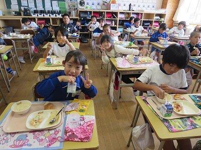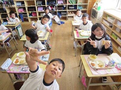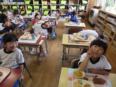 今日は1~4年生の給食風景からです。