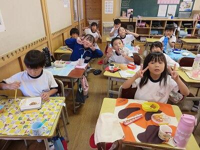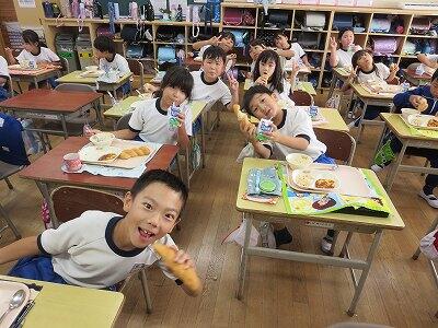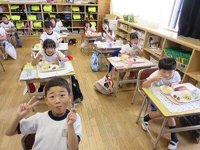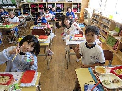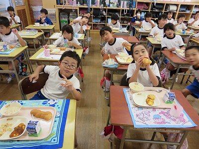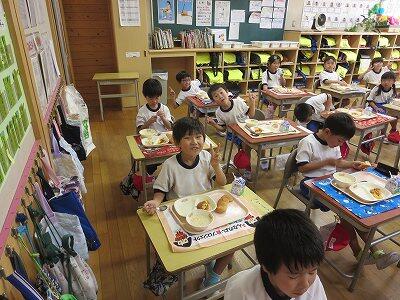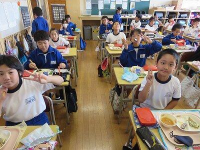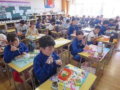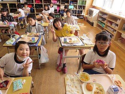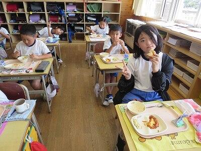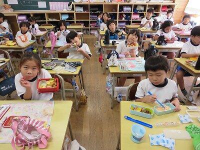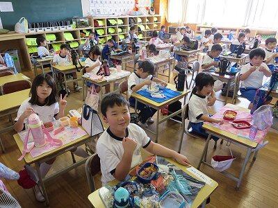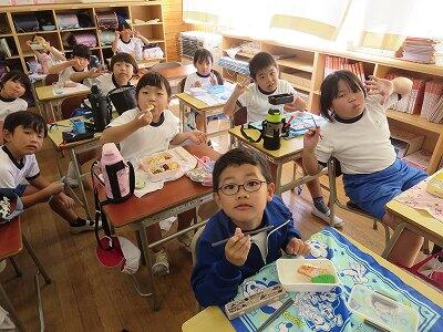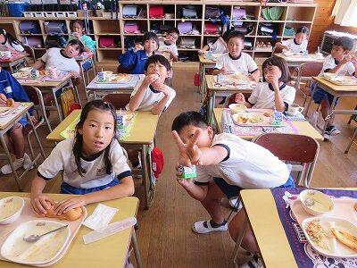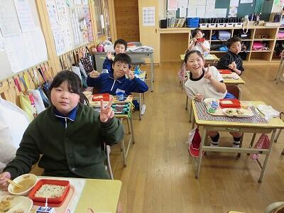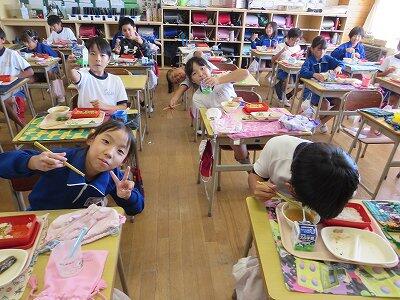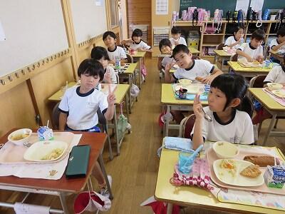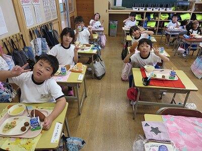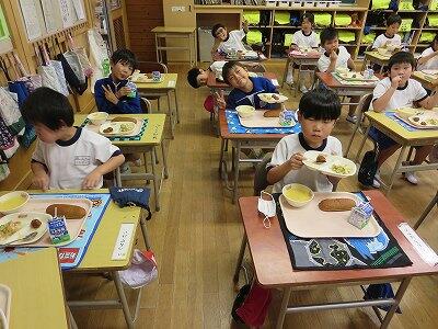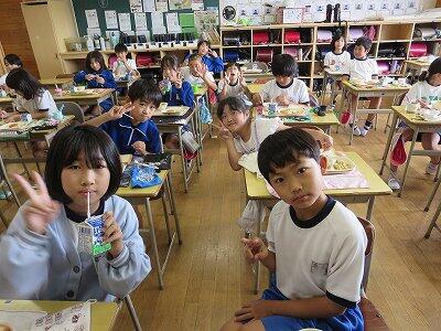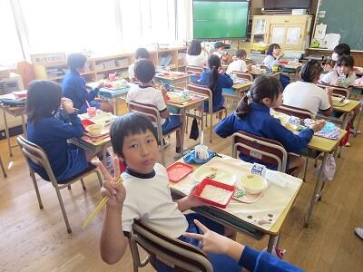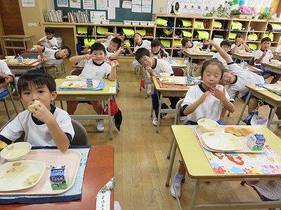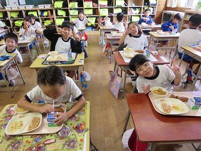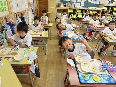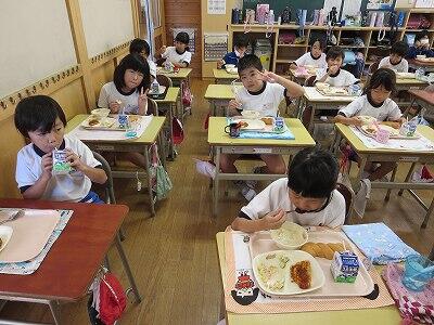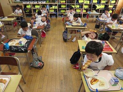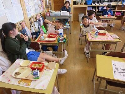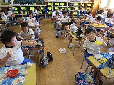 今日は1~4年生の給食風景からです。