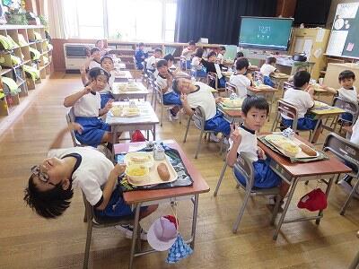 今日は、3・4年生の給食風景です。