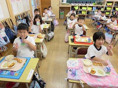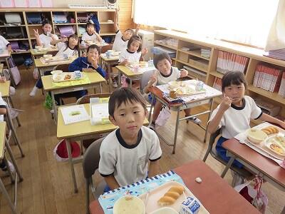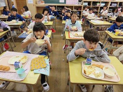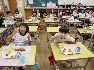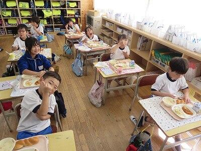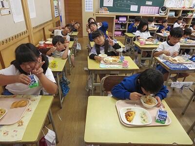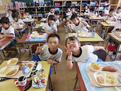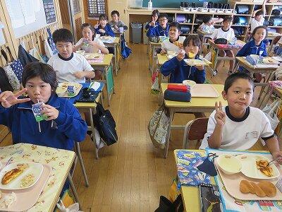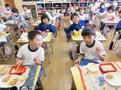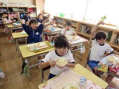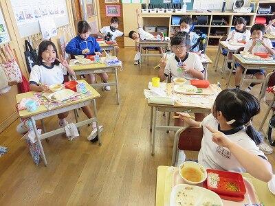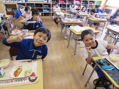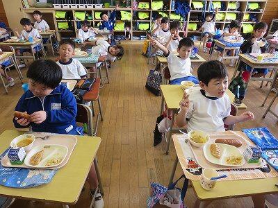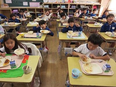 今日は1・2年生の給食風景です。