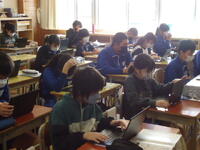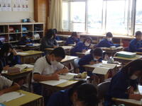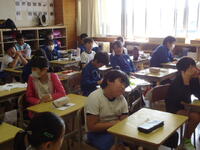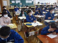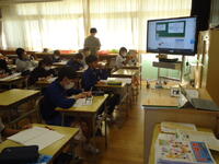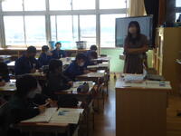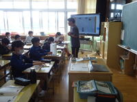 本日の4校時、2年2組の教室に於いて、真岡市教育委員会から先生をお招きし、「授業研究会」を行いました。