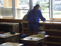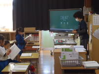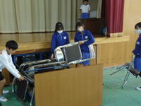 6年1組の児童が、明日実施の「就学時健康診断」の会場設営を行いました。