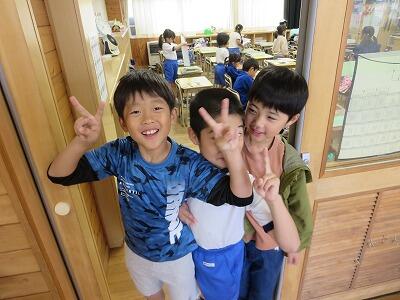 今日も久下田小学校の子どもたちは元気です。