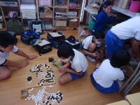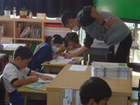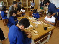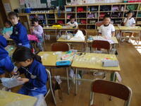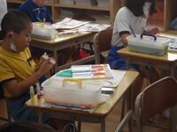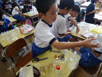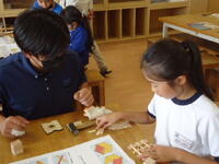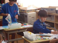 子供たちは、高校生のお兄さんに分からないことを質問したり、作業の手順を教えてもらったりと、大変熱心に、そして楽しそうに作業に取り組んでいました。