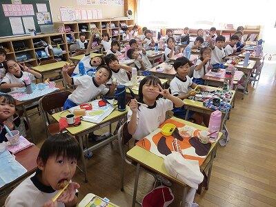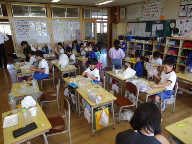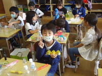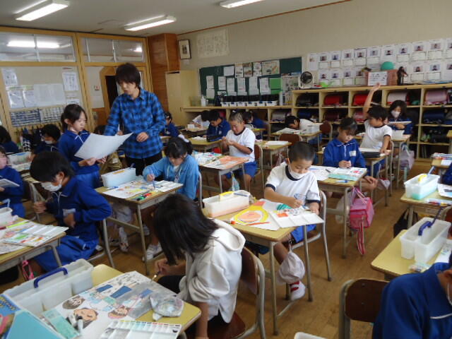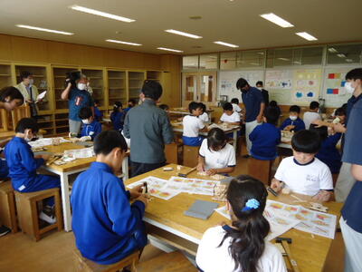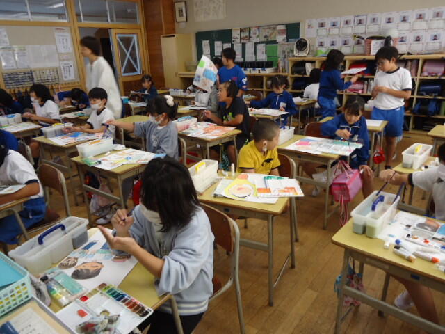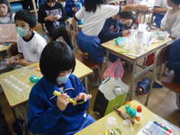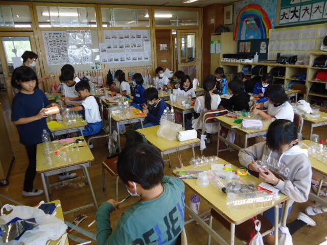 「3年1組」では工作を、「4年1組」では絵画を行っていました。どちらのクラスも子供たちは楽しそうに、そして意欲的に創作活動に取り組んでいました!