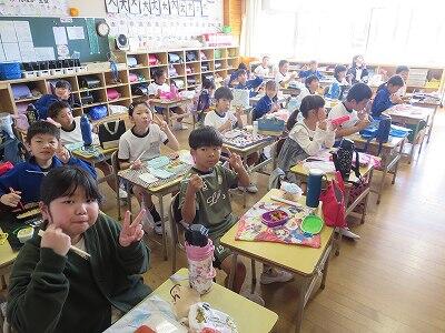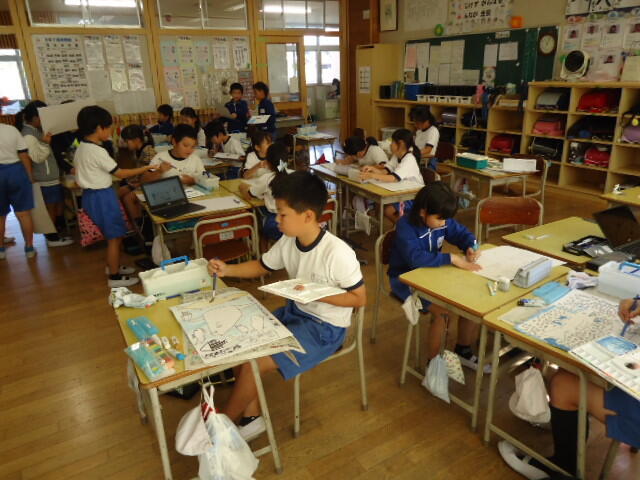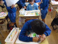 3クラスの「図工の授業中」にお邪魔しました。