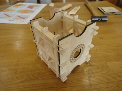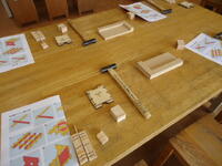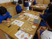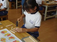 真岡工業高校の紹介から始まり、「鹿沼組子」についての説明、そして実際にのこぎり等を使っての材料の切り出し、組み立て作業と、大変充実した内容の講座を展開してくださいました。