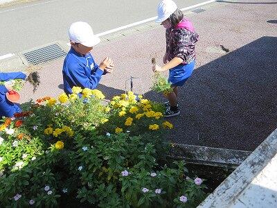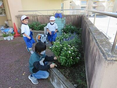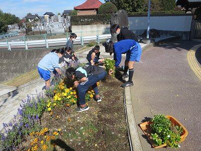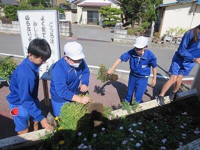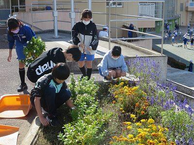 栽培委員会の子どもたちが作業をしています。