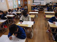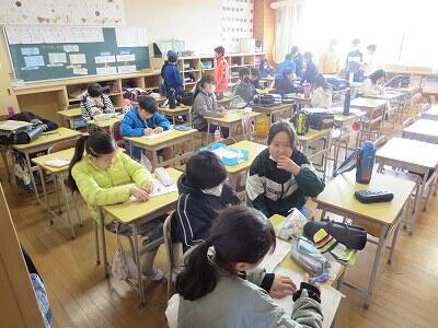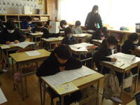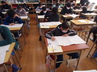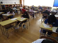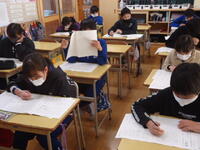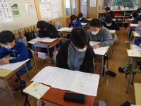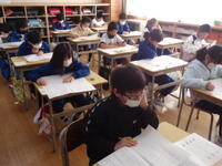 3~6年児童は、真岡市総合学力調査【2校時(国語)・3校時(社会)】を、行いました。緊張感漂う教室の中、子供たちは大変真剣な態度で、意欲的にテストに臨んでいました。