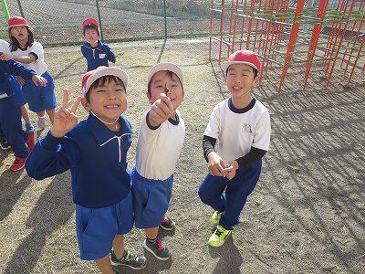 ★子供たちは、穏やかな日の光を身体いっぱいに受けながら、元気いっぱい体を動かし、遊びに夢中になっていました(^^♪)