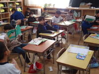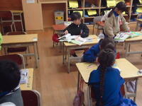 2年1組の「国語」の授業では、図書室に行って各自思い思いの本を選び、気に入った本を借りる作業の真っ最中でした。「本は心の栄養!」、たくさん読んで今以上に豊かな心の持ち主になってくださいね(^^♪