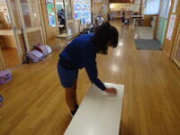 「私たちが久下田小学校をピカピカにします!」