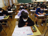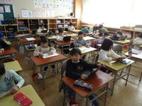 担任から子供たち一人一人に「通知表」を手渡しているクラス、冬休みの過ごし方について確認しているクラス、全員でゲームを楽しんでいるクラス、そして最後の最後まで教科学習に臨んでいるクラス等々、各教室それぞれに2学期最終日を充実した時間となるよう教員・児童で共有していました(#^^#)