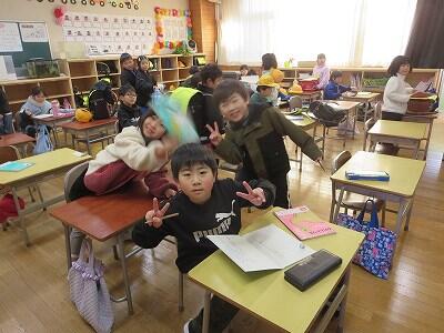 今学期最終日、「お楽しみ会」の真っ最中にお邪魔しました。