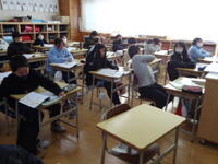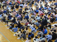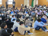 ①「体育集会(持久走)」では、晴天には恵まれたのですが、とにかく風が冷たく、決して好条件とは言えない陽気でしたが、一人一人が目標を決め、達成を目指し、頑張って走っていました。集中して走っている姿を見て、とても頼もしく感じました。