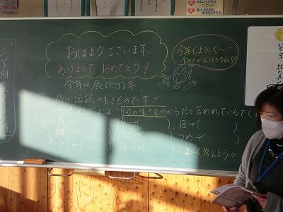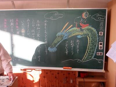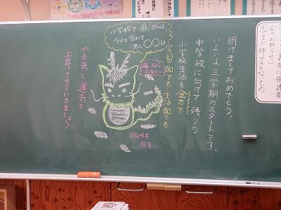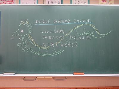 今年は辰年ですね。児童の皆さん一人一人が「昇り龍」のように、力強さと逞しさを携えて、3学期もそれぞれの目標達成を目指し、力一杯頑張って欲しいと願っています(^_^)v もちろん先生たちも皆さんに負けないよう頑張ります!