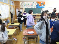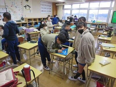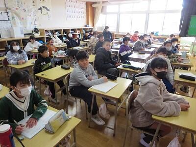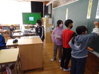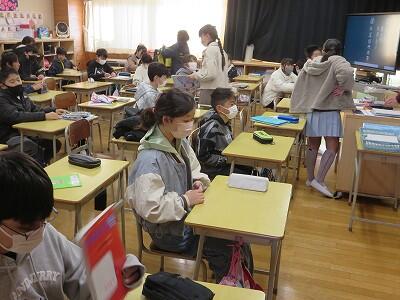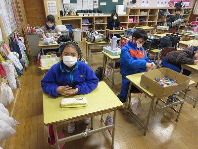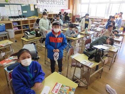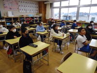 教室をのぞいてみると、早速授業を始めているクラス、3学期のめあて等について話し合っているクラス、係活動を決めているクラス、頑張ること等をみんなで確認し合っているクラス等々、各教室それぞれに第3学期が充実した素晴らしい学期となるよう教員・児童で共有していました(#^^#)