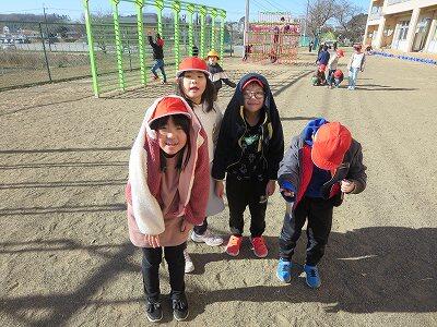 ★児童の皆さん、今日は晴れてはいますが風はとっても冷いです。外遊びは大いに結構なのですが、くれぐれも風邪等ひかないよう、健康管理には十分気を付けてくださいね!(^^)!