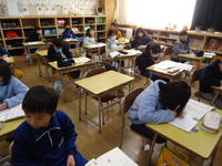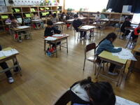 ②1・2年生は「学力調査(国語・算数)」を行いました。子供たちはこれまで学んできた成果を存分に発揮しながら、集中して鉛筆を走らせていました。