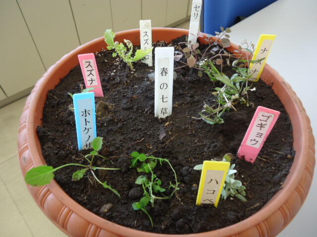 ★児童の皆さん、「春の七草」を鑑賞しながら季節感を大いに味わってくださいね!(^^)!