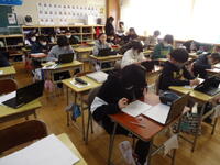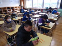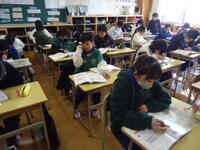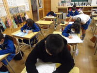 6年2組では、「卒業アルバム」の中に掲載する「作文:6年間の思い出」の清書に取り組んでいました。子供たちは可能な限り丁寧な字で書こうと、集中して鉛筆を走らせていました。きっと素晴らしいアルバムが出来上がることでしょう。今から完成が楽しみですね(^^♪)