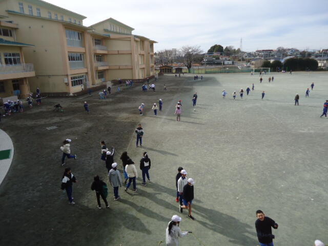 業間休みの時間よりは気温が上がってきたせいか、校庭に飛び出してきた児童数が増えました!(^^)! さすがに「子供は風の子!」、相変わらず元気いっぱいですね。