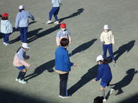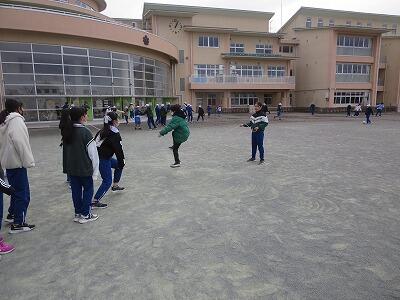4年2組の「体育」の授業は校庭で、5年1組の「体育」の授業は体育館でと場所は違い、どちらもひんやりとしていますが、子供たちにとってそんなことは関係ないようで、思い切り運動に熱中していました(^^♪)