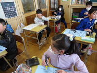 5・6年生児童がそれぞれの委員会毎に集まり、一人一人が3学期に頑張りたいこと等を委員会活動カードに記入し、全員で3学期の予定を確認した後に実際の活動に入りました。