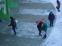 朝、登校してきた子供たちは、教室に入る前に思わず足を止め、【雪】の感触を楽しんでいました!(^^)!