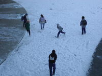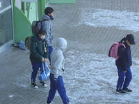 校庭の一部には、先週の土曜日に降った雪が、ほんの少しですが残っています。