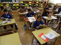③子供たちが楽しみにしている「読書ボランティアさんによる読み聞かせ」がありました。各クラスでは子供たちがボランティアさんに対し真剣な眼差しを向け、夢中になって耳を傾けている姿を見ることができました。